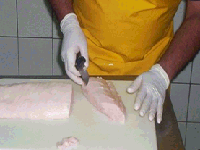 killed as soon as it is secured on the mattress by destroying the brain. Two slits are made